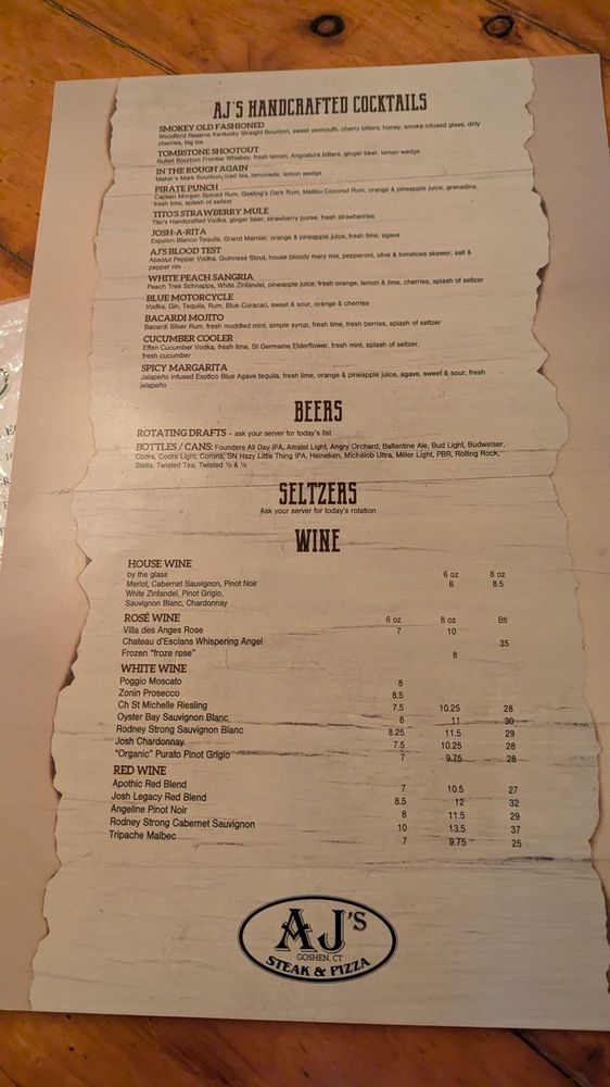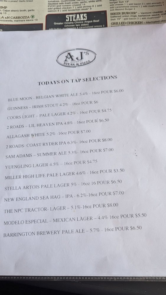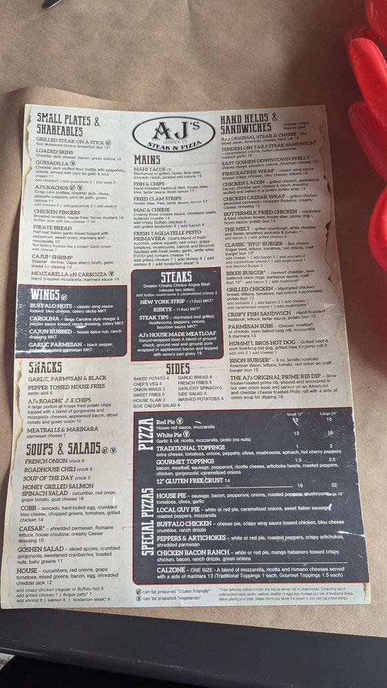 Welcome to AJ's Steak & Pizza, where mouthwatering flavors and a cozy ambiance converge! Nestled in Goshen, CT, this veteran-owned eatery specializes in a delightful fusion of steak and pizza, perfect for casual dining. The menu features a variety of vegetarian options alongside crowd favorites like juicy NY Steak Strips and perfectly crafted pizzas.